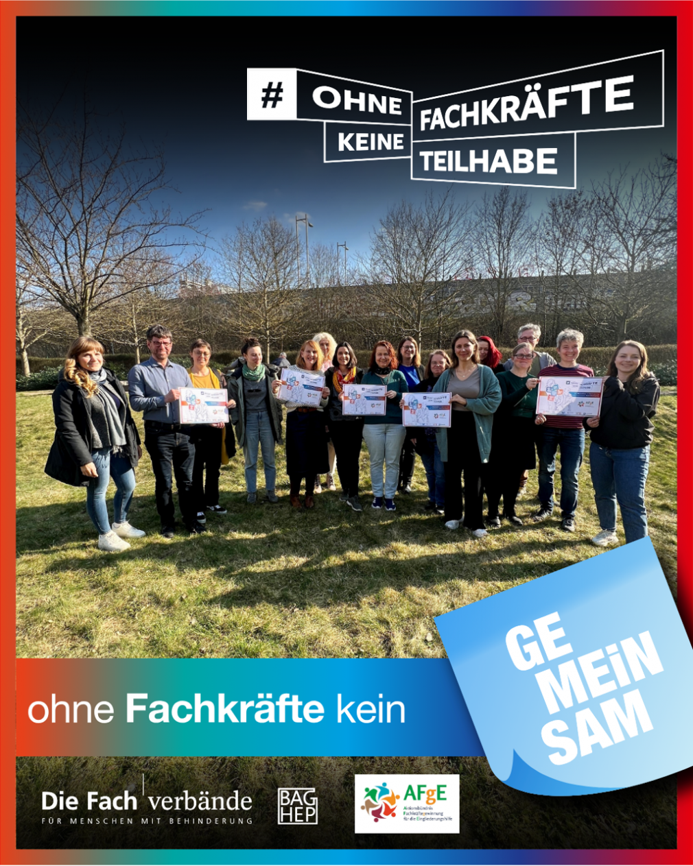Gemeinsam bewirken wir mehr. Die Zukunftssicherung Berlin e.V. ist Teil des Aktionsbündnisses Fachkräftegewinnung in der Eingliederungshilfe (AFgE). Zusammen mit Berliner Leistungserbringern und Fachschulen setzen wir uns unter anderem für eine größere Sichtbarkeit des Berufsbildes der Heilerziehungspflege ein. In dieser Woche stellen Mitglieder des Aktionsbündnisses in verschiedenen Formaten die vielfältigen Arbeitsbereiche in der Eingliederungshilfe praktisch vor.